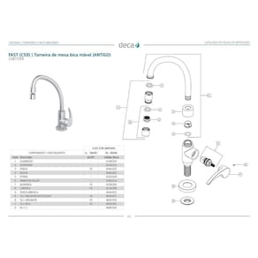 Torneira De Mesa Para Cozinha Bica Móvel Linha Fast Deca - 1167C59