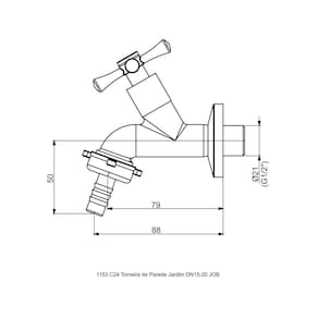 Torneira De Parede Para Jardim - Job - 1153 - Torneira metálica curta de parede compacta e resistente, indicada para tanque ou jardim. - Composição básica: ligas de cobre, plásticos de engenharia e elastômeros. - Acabamento superficial biníquel cromado que proporciona alta resistência à corrosão. - Bitola de 1/2' (DN15). - Acionamento de volta com pastilha cerâmica. - Furo na parede: 25mm a 30mm. - Produto de Fácil Instalação. - Acompanha: Torneira, adaptador de 3/4 (DN20) e bico união, que além de direcionar o jato de água, evitando respingos desnecessários, serve para acoplar mangueiras de jardim. - Cor: Cromado - Observações: Foto Ilustrativa. Não incluso instalação. Marca: PERFLEX METAIS