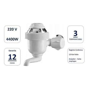 1 Torneira Elétrica Bica Baixa Branca 220V/4400W Sintex