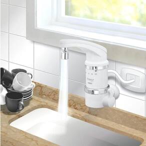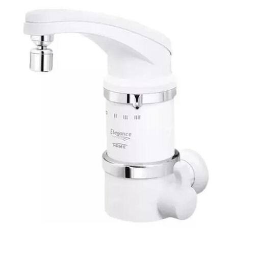DescriçãoTorrneira Elegance 4T FAME para instalação em Bancada, específica para cozinhas planejadas onde o ponto de água fica abaixo da bancada. Prática e fácil de utilizar, desengordura com facilidade e economizando detergente, água e energia elétrica!4 Temperaturas: Fria, morna, quente e super quente.Bica Alta e Móvel com giro de 180: Com movimento giratório que possibilita o alcance da água num jato uniforme e por todo interior da cuba.Arejador articulado: Jato concentrado e uniforme.Registro "Abre Fácil": Versátil e eficaz, com 1/4 de volta.Vedação Progressiva: Menor desgaste por tempo de uso. Especificações Complementares:Marca: FameReferência: 3988Modelo: EleganceLinha: Torneiras ElétricasEan: 7896039739881Cor: BrancoMaterial: Plástico de EngenhariaMedidas do Produto- cm (LxCxA): 7x21x36Peso: 0,711Garantia: 3 mesesTensão (Volts): 220VPotência Nominal (Watts) Posição 4 - Super Quente: 5.400WPotência Média (Watts) Posição 3 - Quente: 3.200W Potência Econômica (Watts) Posição 2 - Morna: 2.200W Seção Mínima do condutor (mm): 4,0 Disjuntor (Ampère): 32A Distância máxima do quadro de distribuição (m): 32m Compatível com sistema de aquecimento solar.