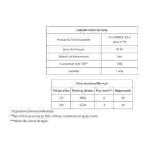 - Pressão de Funcionamento: 20 a 400kPa (2 a 40mca)