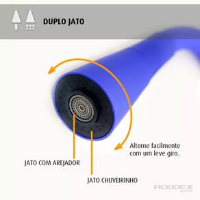 - Arejador com duplo jato: fluxo contínuo sendo ideal para lavar louças ou modo chuveirinho, perfeito para higienizar alimentos.