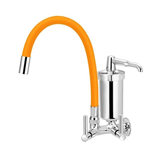 Torneira bica móvel 360 giratória de cozinha para instalação na parede, modelo gourmet, fabricada em metal cromado. Possui arejador. Sua bica flexível gourmet oferece flexibilidade de uso, podendo ajustá-la para o local mais adequado sem perder a rigidez do posicionamento, gerando melhor conforto e facilidade de uso para o dia-a-dia. Sua bica fabricada em metal inoxidável permite longa vida em seu acabamento, proporcionando eficiência em sua estética durante longo tempo. O produto conta também com filtro completo, incluindo o elemento filtrante vela em carvão ativado aprovado pelo INMETRO, absorvendo o máximo de impurezas, podendo ser utilizada para o consumo humano. Além disso, conta com mecanismo de abertura e fechamento 1/4 de volta, gerando mais economia e conforto ao manusear, com maciés e rapidez, trazendo mais economia de tempo e água.