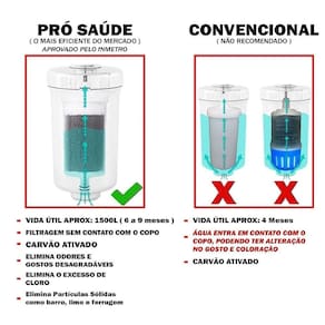 Torneira Gourmet Com Filtro Cozinha De Parede Metal 1/4v. Torneira Gourmet Com Filtro Cozinha De Parede Metal 1/4v. Torneira em metal 3/4 robusta certificado pelo INMETRO, filtro e chuveirinho em ABS, plástico de engenharia altamente resistente. Especificações Pressão Mínima: 4 mts 4 MCA metros de coluna d'água para um bom funcionamento Entrada de água: 1/2 com adaptador para 3/4 Mecanismo de acionamento: metal cerâmico 1/4 volta Filtro: Tecnologia moderna Pró Saúde garante uma filtragem ainda mais eficiente, Certificado Inmetro. Refil: Blindado Água não entra em contato com o copo do filtro Tubo: Gourmet Móvel até 360 Graus Dimensões: Altura posição normal: aproximadamente 28cm : - 90 dias de contra defeito de fabricação e mecanismo de vedação. Observação: Certifique-se de que a foto do produto é o modelo correto para sua instalação Parede ou Bancada . - Recomendações de Uso, Manutenção e Limpeza: Limpar a torneira apenas com um pano macio e sabão neutro. Não usar produtos abrasivos como: sapólio, palha de aço e produtos químicos. Marca: Não Informado