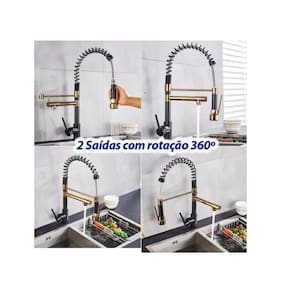 Torneira gourmet 2 saídas preta e dourada brinovar O misturador monocomando para cozinha, é ideal para você que quer unir praticidade e conforto com modernidade e sofisticação em uma só torneira. Através de um fácil comando, mistura-se água quente e fria, o que facilita encontrar a temperatura ideal e aumenta a vida útil da torneira. Versátil, este produto pode ser apenas com água fria com a ajuda de uma conexão t na instalação . Especificações técnicas: Marca: brinovar Cor: preto e dourado Acabamento: preto fosco e dourado cromado brilhante Material: aço inox 304 Modelo: 2 saídas de bancada Indicação: cozinha / espaços gourmet / ilhas / churrasqueiras Instalação: bancada / pia Sistema: monocomando Bica: móvel e giratória com rotação 360 graus Quantidade de saídas de água: 2, torneira ducha e torneira para filtro filtro não incluso Jato de água: bica giratória aerado e bica móvel ducha gourmet com acionamento através do botão Arejador: sim Altura: 51 cm Largura: 4,5 cm Comprimento total: 26,5 cm Temperatura mínima da água: 5 celcius Temperatura máxima da água: 75 celcius Utilização somente com água fria: sim, necessário a utilização de adaptador 't' não incluso Aquecedor compatível com a torneira: elétrico, solar e gás não incluso Pressão mínima da água: 3mca metros de coluna dágua Pressão máxima da água: 40mca metros de coluna dágua Pressão ideal da água: acima de 5mca metros de coluna dágua Cartucho: cartucho cerâmico de alta durabilidade 500.000 ciclos Perfuração da bancada: 3,5 cm Rosca: 3 cm : 90 dias Atenção: o produto não acompanha filtro, apenas a torneira para o filtro Cuidados: Não use palha de aço, produtos químicos, não usar ácido muriático, água sanitária ou qualquer outro solvente para a limpeza. Limpe periodicamente o seu produto apenas com um pano macio, água e sabão neutro. Para manter o brilho do seu produto recomendamos o uso da pasta para polir e remover manchas em superfícies de aço inoxidável. Itens inclusos: Torneira monocomando 2 saídas Mangueira flexível de aço trançado 50cm para ligação de água quente e fria Sistema de fixação Anéis de vedação Marca: Não Informado