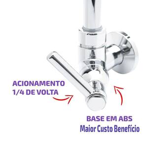 Torneira ABS Gourmet Parede 1/4 VoltaAcrescente o desenho gourmet hoje mesmo em sua cozinha e tenha facilidade ao lavar-louças.Desenhada com design inovador totalmente flexível em 360, facilitando o uso durante a louçaTorneira inoxidávelSobreposto com 04 camadas de cromo e 144 horas de Salt Spray;Com arejador incluso e 2 modos de jatos d'água;INFORMAÇÕES TÉCNICASProduto: Torneira ABS Gourmet de Parede Acionamento 1/4;Material: ABS;Cor: Cromado;Utilização: Cozinha/Área Gourmet;Acionamento: 1/4 Volta;Pressão Mínima: 03 MCA;Pressão Máxima: 40 MCA;Temperatura: 0C - 80C;Ligação: 1/2;Garantia: 3 Meses; Marca: Dazie Metais