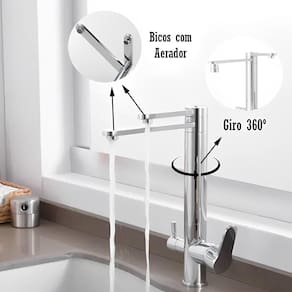 - Giratória: A torneira possui o corpo com a capacidade de rotação de 360º, facilitando a lavagem;