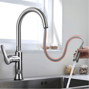 Torneira Gourmet Extensível Monocomando com Ducha 2 Jatos para Cozinha Torneira Gourmet Extensível Monocomando com Ducha 2 Jatos para Cozinha Torneira Extensível Gourmet Monocomando A Torneira Extensível Gourmet Monocomando combina praticidade e um design sofisticado, perfeita para deixar sua cozinha ou área gourmet ainda mais funcional. Com seu acionamento monocomando, você pode controlar a temperatura da água quente e fria com facilidade, proporcionando conforto para lavar louças e mãos. A torneira otimiza o espaço da bancada e oferece flexibilidade com sua bica giratória 360 e ducha extensível de até 50 cm, facilitando o uso diário. Principais Características: