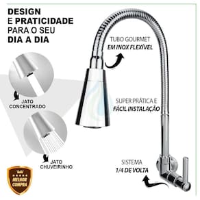 Com design moderno, instalação fácil e durabilidade, esta torneira é a escolha perfeita para quem busca funcionalidade aliada à elegância na cozinha.