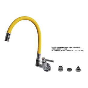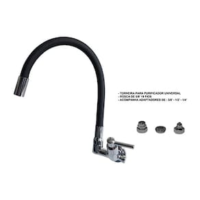 Torneira Gourmet Parede Com Saída Universal Para Purificador Cor: Preta torneira com saida universal para purificadores. Sua rosca de 5/8' 19 fios acompanha adaptadores de 3/8' - 1/2' - 1/4'. servindo em purificadores de diversos modelos e marcas. O design desta torneira de mesa deixa a cozinha muito sofisticada e elegante, tornando-se um objeto de decoração indispensável. Perfeita para varandas gourmet. É uma peça multiuso e prática, com atributos que agregam nas tarefas do dia a dia. Possui rapidez no acionamento e fechamento, proporcionando economia de água. Sua cozinha merece essa qualidade. - Torneira fabricada em metal latão cromado de alta resistência e durabilidade, proporcionado um custo beneficio sem igual. - Tubo de silicone colorido totalmente flexível 50 cm . - Sistema de Acionamento de volta com pastilhas cerâmicas. - Fácil instalação e manutenção. - Recomendações de Uso, Manutenção e Limpeza: Limpar a torneira apenas com um pano macio e sabão neutro. Não usar produtos abrasivos como: sapólio, palha de aço e produtos químicos. Marca: Lhd Metais