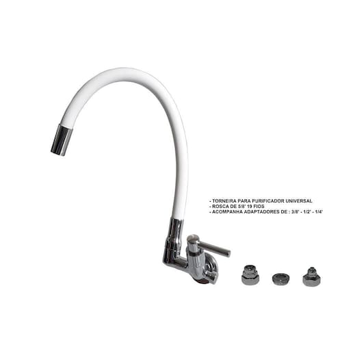 torneira com saida universal para purificadores. Sua rosca de 5/8' 19 fios acompanha adaptadores de 3/8' - 1/2' - 1/4'.