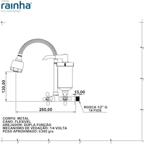 Tubo flexível gourmet também em metal. Comprimento: 30 cm Composição: Latão e Silicone Acompanha Arejador: Sim Altura: 30 cm Altura Bica: Alta Altura da saída de água: 13 cm Altura Total: 30 cm Ambiente Principal: Cozinha Bitola: 1/2 Conforto PNE: Não Cor: Cromado Cor do Produto: Cromado Diâmetro: 20 mm Economizador: Sim Elemento filtrante: Carvão Ativado Filtro: Sim Itens Inclusos: 01 Torneira Largura: 1,59 cm Local de Uso: Parede Manual de Especificação Técnica: https://product-hub-prd.madeiramadeira.com.br/911994/documents/ec8cedda-a827-4422-b53f-f17a7f8795fb1998938575117171807279785.pdf Manual de Montagem e Instalação: https://product-hub-prd.madeiramadeira.com.br/911994/documents/bb3b27de-07bc-4244-aa2b-d14431ffec631998936575117171807166612.pdf Orgão normatizador: ABNT NBR-10281 Origem do Produto: Nacional Peso: 0,864 kg Pressão Máxima: 40 m Pressão mínima: 2 m Quantidade de Jatos: 2 Tipo de Acionamento: 1/4 de volta Tipo de Bica: Articulável Tipo de Instalação: De Parede Tipo de Jato: Aerado Torneira Elétrica: Não Vida útil do elemento filtrante: 6 meses