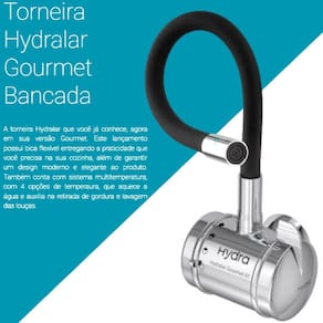 A torneira Hydralar que você já conhece, agora em sua versão Gourmet. Este lançamento possui bica flexível entregando a praticidade que você precisa na sua cozinha, além de garantir um design moderno e elegante ao produto. Também conta com sistema multitemperatura, com 4 opções de temperaura, que aquece a água e auxilia na retirada de gordura e lavagem das louças.