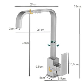 => Detalhes: - Em Aço Inox 304 de alta qualidade e acabamento. - Função: Monocomando (Misturador de água quente e fria). - Tipo de Fechamento: Cerâmico. - Abertura 1/4 de volta (500.000 ciclos) - Medida da Furação (pedra ou bancada): De 3,2cm até 4 cm de diâmetro. - Pressão Mínima Recomendada: 4 MCA - Pressão Máxima: 1,6 MPA. - Ângulo de Giro: 360º - Dimensões: 24 x 33 cm (L x A). - Peso: 1,6 Kg. - Acompanha dois tubos flexíveis (água quente e fria), medida total 60 cm. - Certificado CE, TSE, ISO9001