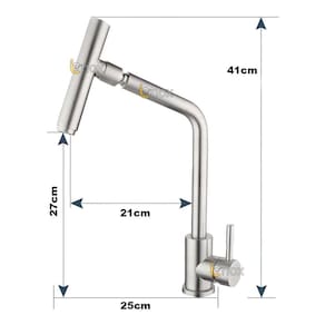 Torneira Monocomando, em Aço Inox c/ acabamento Escovado. Com haste e bico 360º.