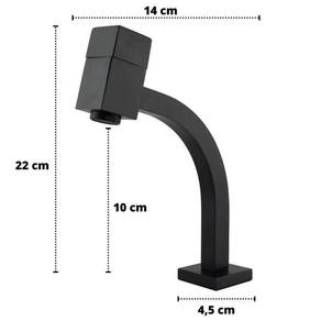 Características: Torneira para banheiro de mesa link quadrada 45º 1/4 de volta baixa preta fosca - altura total: 23 cm - altura da queda d'água: 14,5 cm - comprimento: 17 cm - largura: 4,5 cm - 1/4 volta: sim - acabamento: cromado - material: latão - cartucho: cerâmica - efeito de queda: jato - modelo: link quadrada - pressão mínima: 4 m.C.A. - pressão máxima: 40 m.C.A. - furo: 20 mm - abertura: controle gradual - bitola: padrão 1/2 - arejador: para economia de água Medidas - altura: 22,0cm - altura da bica: 10,0cm Itens inclusos -torneira - peças para fixação Ficha técnica- Largura da torneira da cuba: n/a- Comprimento do chuveiro de mão: n/a- Comprimento da torneira da banheira: 14 cm- Lugares de colocação: Cuba- Tipo de punho: Quadrado- Altura da torneira da banheira: 22 cm- Fonte do produto: 1- Largura da torneira do bidê: n/a- Tipo de montagem: De mesa- Com chuveiro de mão: Não- Com temporizador de fechamento automático: Não- Com pico extensível: Não- É misturador: Não- Comprimento do chuveiro: n/a- Acessórios incluídos: Acessórios para fixação- Com luzes: Não- Quantidade de furos: 1- Com torneira flexível: Não- Acabamento: Cromo- Com aerador: Sim- Diâmetro do furo de instalação: 1/2- Materiais: Latão- Tipo de fechamento da torneira: Cerâmico- Tipo de controle da torneira: Monocomando- Cor principal: Preto- Largura da torneira da banheira: n/a- Modelo detalhado: Latão Triplo Cromado- Altura da torneira da cuba: 22 cm- Comprimento da torneira da cuba: 14 cm- Cor: Preto Fosco- É produto giratório: Não- Pressão máxima de água: 40