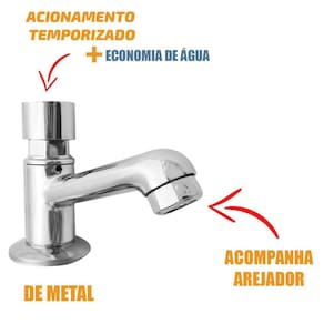 Torneira Lavatorio Banheiro Automatica Pressmatic Metal Torneira Para Banheiro Modelo Temporizada - Pressmatic Fechamento automático entre 15 e 30s.