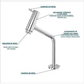 Sobre o Produto Torneira para Lavatório 45° 1/4 Volta Bica Baixa 22cm Metal Cromado Descrição do Produto: A Torneira de mesa baixa 3130 é fabricada em metal cromado de alta resistência e durabilidade, além de possuir arejador que permite economia de água. Sua bica é fixa e possui mecanismo cerâmico de alta performance com acionamento 1/4 de volta, que proporciona leveza na abertura e no fechamento, maior facilidade e precisão na regulagem de vazão além de uma vedação perfeita. Itens Inclusos: 1 Torneira de mesa baixa Informações Logísticas: Vol.01 Comp.: 45cm Prof.: 13cm Alt.: 15cm Peso Bruto: 0,41Kg Observações: Não acompanha acessórios decorativos. Imagens meramente ilustrativas. Informações Técnicas / Características: Cor: Cromado Marca: CMM METAIS Modelo: Link Linha: 3130 Tipo de Torneira: Convencional Local: Lavatório Tipo de Instalação: De Mesa Acabamento: Camada de Cromo Salt Spray. Possui alta resistência contra corrosão, maresia, oxidação e descascamento. Material: Liga de Cobre Bronze e Latão , Inox, Zamac, Elastômeros e Plásticos de Engenharia Possui Arejador Sim Tipo de Bica: Fixa Pressão Máxima: 40 m.c.a. Pressão Mínima: 2 m.c.a. Temperatura da Água Indicada: Mín.: 5° Celsius / Máx.: 70° Celsius Bitola do Cano: 1/2'' Altura Total: 22cm Altura da base até a saída da água: 14cm Profundidade da saída da água até o final do cano: 14cm Peso Líq.: 0,3Kg Recomendações de Uso, Manutenção e Limpeza: Limpar apenas com pano macio e sabão neutro. Não usar produtos abrasivos como sapólio, palha de aço e produtos químicos. Marca: Não Informado Ean: 7898664074429