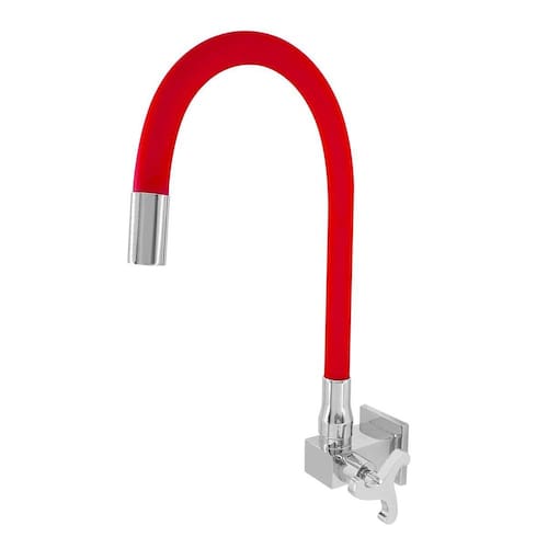 Torneira Luxo Parede Cozinha Bica Vermelha Metal 1/4 Volta