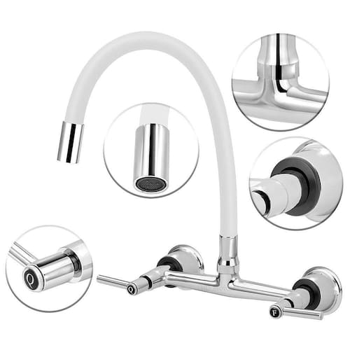 Torneira Misturador Cozinha De Parede Gourmet Colorido 1/4v. Cor: Azul (PRETO,VERMELHO.BRANCO,AZUL,AMARELO) Este misturador duplo comando oferece para a sua cozinha beleza e requinte, trazendo modernidade e elegância para o ambiente. Com 2 comandos independentes, possibilita controlar a vazão, misturando água quente e fria com conforto e facilidade. Um produto inovador de alta qualidade e com a cor que você sempre sonhou para dar um toque especial na sua cozinha Mecanismo de vedação cerâmico. 1/4 de volta. Rapidez no acionamento e fechamento, proporcionando economia de água. Além disso, permite a utilização de cuba dupla. Temperatura máxima de 70 c. Material - Metal Tecnologia - Tubo colorido ajustável no formato e na altura. Tipo de Bica - Articulável Mecanismo de Vedação Cerâmica Compatível com sistema de aquecimento - Sim Composição - Latão Recomendações de Uso, Manutenção e Limpeza Limpar apenas com pano macio e sabão neutro. Não usar produtos abrasivos como sapólio, palha de aço e produtos químicos. Local de Uso - Parede Tipo de Acionamento - Alavanca Tipo de Instalação - De Parede Altura Bica - Alta Pressão Máxima - 40 m Pressão mínima - 2 m Largura - 5 cm Comprimento - 35 cm Altura - 35 cm Peso - 1,300 kg Bitola - 1/2 Ambiente Cozinha
