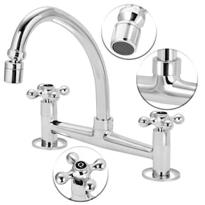 Torneira Misturador Cozinha Mesa Arejador Articulado 1/4v. C/33 Cor: Prateado Torneira Misturador Cozinha Arejador Articulado 1/4v é indicado para instalação em Pia Mesa. Este misturador duplo comando oferece para a sua cozinha beleza e requinte, fabricado em metal cromado de alto padrão de qualidade, apresenta maior durabilidade e resistência aos processos de corrosão e oxidação, manifestações comuns em locais com umidade. Trazendo modernidade e elegância para o ambiente. Com 2 comandos independentes, possibilita controlar a vazão, misturando água quente e fria com conforto e facilidade, conta ainda com bica móvel e arejador articulado otimizando muito o seu uso. Um produto inovador de alta qualidade. Mecanismo de vedação cerâmico. 1/4 de volta. Rapidez no acionamento e fechamento, proporcionando economia de água. Além disso, permite a utilização de cuba dupla. Temperatura máxima de 70 c. - Material - Metal - Tipo de Bica - Bica móvel com arejador articulado. - Mecanismo de Vedação Cerâmica - Compatível com sistema de aquecimento Sim - Composição - Latão - Altura Bica - Alta - Pressão Máxima - 40 m - Pressão mínima - 2 m Todos os nosso misturadores possui Medida padrão de 20,5 cm de centro a centro. E para conexão de parede possui o excêntrico para pequenos ajustes. 19 a 21,5 ele atende. MEDIDAS - Altura total 25 cm - Altura da saida de agua ate os comando de abrir e fechar é de 14 cm - Profundidade 18 cm - 90 dias de contra defeito de fabricação e mecanismo de vedação. Recomendações de Uso, Manutenção e Limpeza Limpar apenas com pano macio e sabão neutro. Não usar produtos abrasivos como sapólio, palha de aço e produtos químicos. Marca: Não Informado Ean: 07800401716967