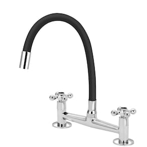 Torneira Misturador Cozinha Mesa Gourmet Flexível Preto Torneira Misturador Cozinha Mesa Gourmet Flexível Preto O misturador Cozinha Flexível Preta é um item que transborda beleza e autenticidade Fabricado em metal cromado de alto padrão de qualidade, apresenta maior durabilidade e resistência aos processos de corrosão e oxidação, manifestações comuns em locais com umidade. Além disso, o Misturador Cozinha Flexível Preta possui revestimento em silicone, garantindo excelente desempenho, flexibilidade e eficiência. Resistente: os materiais utilizados no tubo de silicone foram rigorosamente selecionados. Não ressecam e não perdem a cor com o tempo. Passaram por testes garantindo resistência a altas temperaturas sem qualquer deformidade. - Fácil de limpar: o silicone do tubo não acumula sujeiras e sua superfície lisa torna a limpeza fácil. - Uma pitada criativa: jovem e despojada, a linha é a opção perfeita para quem busca inovar. - A cor preta também está em sintonia com os projetos mais atuais. Misturador de cozinha com entrada de água quente e fria, para instalação na mesa estilo gourmet, com bica móvel giratória  gira 360 para qualquer lado , em inox com regulagem de altura e largura, bica flexível, para pias de cozinha ou ambientes gourmet. Possui mecanismo de vedação cerâmico e sistema de acionamento e fechamento 1/4 de volta, trazendo ergonomia e praticidade, pois não precisa girar demais para abrir e fechar. Sua bica flexível rígida em inox permite o ajuste da altura e largura mais adequada, podendo ajustá-lo a pias de diversos tamanhos. Ótimo desempenho em locais com alta pressão de água. Um produto inovador, conta com alavanca de acionamento de fino acabamento. - Distância entre os eixos de instalação: Medida padrão de 20,5 cm de centro a centro. - E para conexão de parede possui o excêntrico para pequenos ajustes. 19 a 21,5 ele atende. - Tipo de bica: móvel, giratória, regulável, flexível e rígida  a bica não vai ficar caindo após a sua regulagem . - Tipo de mecanismo: 1/4 de volta cerâmico. - Tipo de Bica - Bica Móvel, Totalmente flexível. - Mecanismo de Vedação Cerâmica De Volta - Compatível com sistema de aquecimento - Sim - Composição - Latão  Liga de cobre e zinco  - Pressão Máxima - 40 mca - Pressão mínima - 3 mca A torneira por ser flexível você pode estar ajustando a altura conforme a sua preferencia. O tubo Bico  tem 50cm de comprimento 03 meses de contra defeito de fabricação e mecanismo de vedação. Recomendações de Uso, Manutenção e Limpeza Limpar apenas com pano macio e sabão neutro. Não usar produtos abrasivos como sapólio, palha de aço e produtos químicos.