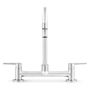 Com o misturador para cozinhas você tem o conforto da água quente e fria para lavar louças e as mãos a qualquer momento. O acionamento ocorre em dois volantes distintos, que garante independência na hora de escolher a temperatura quente ou fria.