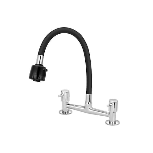 Torneira Misturador Flexível Black Duplo Jato Cozinha Mesa. Torneira Misturador Flexível Black Duplo Jato Cozinha Mesa. O Misturador Cozinha Flexível Preta é um item que transborda beleza e autenticidade Fabricado em metal cromado de alto padrão de qualidade, apresenta maior durabilidade e resistência aos processos de corrosão e oxidação, manifestações comuns em locais com umidade. Além disso, o Misturador Cozinha Flexível Preta possui revestimento em silicone, garantindo excelente desempenho, flexibilidade e eficiência. Resistente: os materiais utilizados no tubo de silicone foram rigorosamente selecionados. Não ressecam e não perdem a cor com o tempo. Passaram por testes garantindo resistência a altas temperaturas sem qualquer deformidade. - Fácil de limpar: o silicone do tubo não acumula sujeiras e sua superfície lisa torna a limpeza fácil. - Uma pitada criativa: jovem e despojada, a linha é a opção perfeita para quem busca inovar. A cor preta também está em sintonia com os projetos mais atuais. Misturador de cozinha com entrada de água quente e fria, para instalação na mesa estilo gourmet, com bica móvel giratória  gira 360 para qualquer lado , em inox com regulagem de altura e largura, bica flexível, para pias de cozinha ou ambientes gourmet. Inovada com bica em aço inoxidável e base fabricada em metal cromado, sob processo extrusivo. Possui mecanismo de vedação cerâmico e sistema de acionamento e fechamento 1/4 de volta, trazendo ergonomia e praticidade, pois não precisa girar demais para abrir e fechar. Sua bica flexível rígida em inox permite o ajuste da altura e largura mais adequada, podendo ajustá-lo a pias de diversos tamanhos. Seu arejador possui 02  dois  tipos de jatos permitindo selecionar o fluxo da água mais adequado, de acordo com a sua necessidade, através dos botões em sua extremidade, sendo: jato aberto tipo chuveiro ou jato fechado convencional. Ótimo desempenho em locais com alta pressão de água. Um produto inovador, conta com alavanca de acionamento de fino acabamento. - Distância entre os eixos de instalação: Medida padrão de 20,5 cm de centro a centro. - E para conexão de parede possui o excêntrico para pequenos ajustes. 19 a 21,5 ele atende. - Tipo de bica: móvel, giratória, regulável, flexível e rígida  a bica não vai ficar caindo após a sua regulagem . - Tipo de mecanismo: 1/4 de volta cerâmico. - Tipo de arejador: Dois tipos de jato, aberto tipo chuveiro ou jato fechado convencional. Material - Metal Tipo de Bica - Bica Móvel, Totalmente flexível. Mecanismo de Vedação Cerâmica De Volta Compatível com sistema de aquecimento - Sim Composição - Latão  Liga de cobre e zinco  Altura Bica - Alta Pressão Máxima - 40 m Pressão mínima - 2 m A torneira por ser flexível você pode estar ajustando a altura conforme a sua preferencia. O tubo Bico  tem 50cm de comprimento 03 meses de contra defeito de fabricação e mecanismo de vedação. Recomendações de Uso, Manutenção e Limpeza Limpar apenas com pano macio e sabão neutro. Não usar produtos abrasivos como sapólio, palha de aço e produtos químicos.