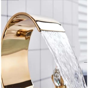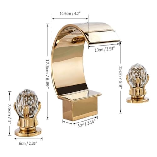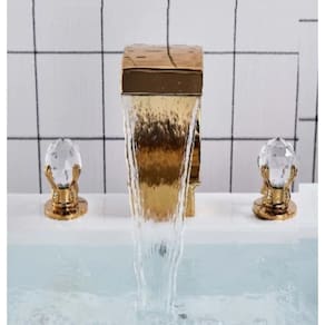 Torneira Misturador Lavabo Banheiro Duplo Comando Fria/Quente Dourado Acabamento com Banho Triplo de Cromo