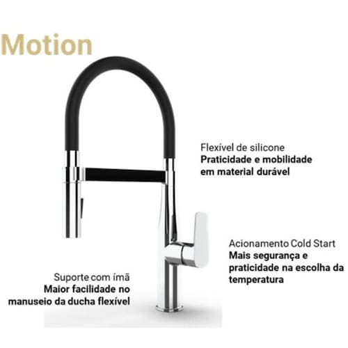 - Marca: Deca; - Referência: 2274.C.PT; - Linha do Produto: Level Motion; - Composição Básica: Liga Cobre (bronze e latão),Zinco,Aço,Plástico,Elastômeros; - Cor Principal: Cromado; - Tipo de Rosca de Entrada: BSP NBR 8133; - Bitola de Entrada de Água: 1/2'' - DN15; - Estilo e Design em Evidência: Estilo contemporâneo; - Tecnologia de Acionamento: Monocomando; - Aplicação do Produto: Mesa; - Tipo de Acionamento: Manual; - Formato do Volante: Alavanca; - Ambiente de Utilização: Cozinha; - Tipo de Mecanismo Utilizado: Cartucho Monocomando; - Pressão Mín Funcionamento (mca): 10; - Pressão Máx Funcionamento (mca): 40; - Vazão na Pressão Máx em l/min: 15; - Vazão na Pressão Mín em l/min: 5; - Press Min. Aquec.Acumulo (Mca): 10; - Produto D.Coat - Pvd: Não; - Ducha móvel com flexível de longo alcance; - Opções de jato: Jato concentrado e jato delicado, de acordo com a sua necessidade; - Bica móvel: Maior mobilidade e praticidade no dia a dia; - Consumo Consciente: Otimização do jato de água; - Vida Prática: Ducha extensível ou flexível;Jato de água direcionável;Regulagem versátil temperatura; - Garantia Prazo (Em Meses): 120.