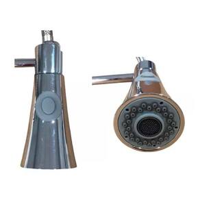 Arejador com duas funções, função jato com saída de água tipo spray que mistura o ar com a água par aevitar respingos indesejáveis, e ajudar na economia de água, e Função chuveirinho para dar mais pressão e ajudar na remoção de resídos.