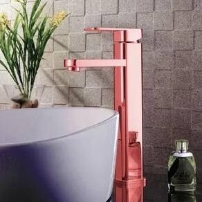 Torneira Monocomando Banheiro Metal Cromo Lavabo Misturador Produto de qualidade, excelente qualidade. Acabamento com Banho Triplo ROSE GOLD, Maior Durabilidade Indicações: Banheiros; Lavatório; Lavabo; Características: - Acabamento em metal rose brilhante, antioxidante e anticorrosivo. - Ideal para lavatórios / banheiros - Possui misturador com Válvula de Cêramica para água quente / fria - Bica alta fixa - Rosca Conexão 1/2 - Dimensões: Conforme a segunda imagem do anuncio. - Peso: 1,440 kg - Diâmetro mínimo do furo para instalação 3,3cm Embalagem: - 2 flexíveis para ligação entre os comandos 1/2 polegadas, . - 1 Torneira Monocomando conforme imagens - Acessórios de fixação. Marca: Não Informado