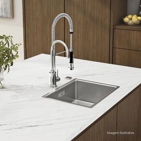 A Torneira Monocomando de Mesa para Cozinha Deca Gourmet é a escolha ideal para quem busca aliar praticidade e sofisticação na cozinha. Parte da linha Gourmet, esta torneira combina a funcionalidade de uma ducha com a elegância de uma torneira clássica, oferecendo o melhor dos dois mundos com um simples toque. Com acabamento cromado, a torneira possui um design moderno e versátil, ideal para diferentes estilos de cozinha. O formato de acionamento é por alavanca, proporcionando um manuseio suave e eficiente. O jato aerado oferece economia de água ao mesmo tempo em que mantém a eficiência na limpeza. Feita no Brasil, esta torneira utiliza um cartucho monocomando, permitindo o controle preciso da temperatura e do fluxo de água com um único movimento. Sua instalação é feita na mesa, proporcionando uma integração perfeita com a bancada da cozinha. Com dimensões generosas, a torneira possui 30,9 cm de comprimento, 60,3 cm de altura e 21,5 cm de largura, pesando 5,246 kg, o que garante robustez e durabilidade. Acompanha na embalagem uma ligação flexível, facilitando a instalação e o uso. A linha Gourmet traz o formato redondo, confeccionado com uma composição básica de liga de cobre (bronze e latão), plásticos de engenharia e elastômeros, garantindo resistência e durabilidade. Com uma bitola de entrada de água de 1/2" (DN15), a torneira opera de forma eficiente entre pressões de 10 mca a 40 mca, com uma vazão mínima de 4 L/min. Este produto é ideal para quem busca funcionalidade sem abrir mão do estilo, e é acompanhado de uma garantia de 120 meses, assegurando sua qualidade e durabilidade.