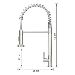 Design Moderno: O acabamento em inox escovado proporciona um visual elegante e sofisticado à sua cozinha, combinando com diversos estilos de decoração. Flexibilidade e Alcance: A bica alta e flexível com mobilidade de 360º facilita as tarefas diárias, permitindo maior alcance e versatilidade. Funcionalidade Completa: Compatível com água quente e fria, a torneira monocomando permite fácil controle da temperatura e do fluxo de água com apenas uma alavanca. Acionamento Preciso: O sistema de 1/4 de volta garante controle suave e preciso, proporcionando uma experiência de uso eficiente e prática. Durabilidade: Fabricada em aço inox de alta qualidade, garantindo resistência à corrosão e longa durabilidade. Praticidade: O chuveirinho integrado facilita a limpeza e o enxágue, tornando as tarefas na cozinha mais práticas e eficientes. Dimensões: