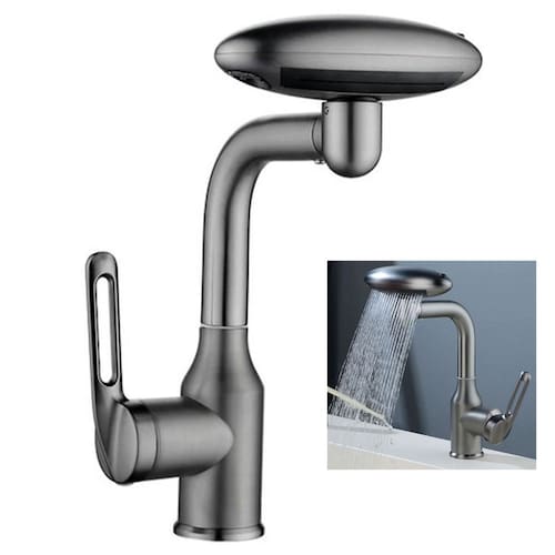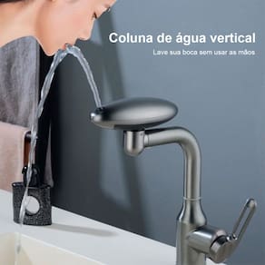 A torneira possui rotaçao 360 graus, ângulos ajustáveis e flexíveis. E a torneira possui 4 modos de jatos de agua (cascata, cortina de água, modo bolha e coluna vertical), para trocar os modo basta girar a torneira.