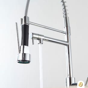 Cor: Cromado Temperatura máxima de utilização: 70C Material: Corpo em aço inoxidável Peso: 1.33kg Altura: 50cm Pressão da água para funcionar: 4 MCA a 40 MCA Itens Inclusos; Torneira, Anel de vedação, 1 Porca, 2 Arruelas, 1 Rosca, 2 Mangueiras de aço inoxidável conexão de entrada: 1/2 , Bola de gravidade para a torneira. Marca: Telca