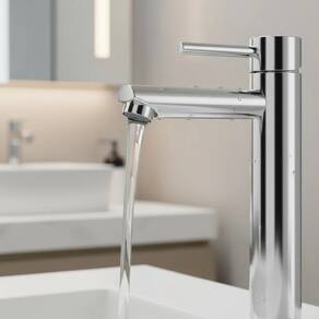 Fabricada em aço inoxidável cromado, essa torneira oferece alta resistência à corrosão e aos desgastes do dia a dia, mantendo sua aparência brilhante e elegante por muito mais tempo. A bica alta facilita o uso, oferecendo mais espaço e permitindo um fluxo de água eficiente e preciso. Ideal para lavatórios de mesa, ela proporciona maior praticidade, especialmente em ambientes compactos.
