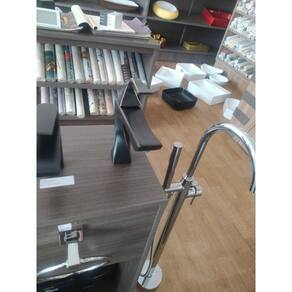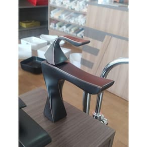 Torneira Monocomando Bica Baixa acabemento no metal preto fosco. Altura Total aberta 25 cm. Altura até a bica 14 cm. Profundidade 18 cm