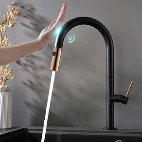 Sensor de toque, corpo de cobre, alça de liga de zinco, bico de plástico, bico de aço inoxidável 201 é pintado de preto, bico e alça de plástico são banhados na cor ouro rosa, aço inoxidável em ângulo reto, fixações de cobre, manga do corpo principal do produto saco de algodão pérola, correia Três mangueiras de aço inoxidável 304, feitas de porca G1 / 2 304, tubo trançado de náilon, duas juntas de núcleo de cobre M10 1, a outra é conectada à caixa de controle 30CM de comprimento, com porca G1 / 2 304 material, união de núcleo de cobre M15 Ean: 7891504101750