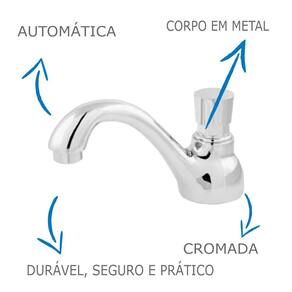 Fabricada com estrutura em metal, um material resistente e durável, essa torneira conta com um acabamento cromado que a torna ainda mais bela. Além disso, ela faz parte da linha automática com temporizador, seguindo rigorosos padrões de qualidade internacionais. Seu temporizador pode ser ajustado entre 6 e 10 segundos, garantindo um uso eficiente da água.