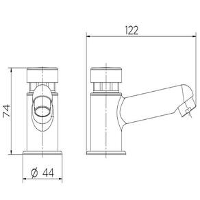 - Comprimento do produto: 122 mm - Altura do produto: 74 mm - Largura do produto: 44 mm - Diâmetro do furo para instalação: 35 mm