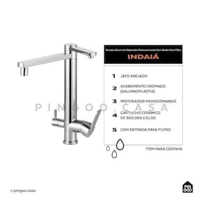 1 Torneira Para Cozinha Gourmet Misturador Monocomando Com Saída Para Filtro Indaiá