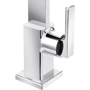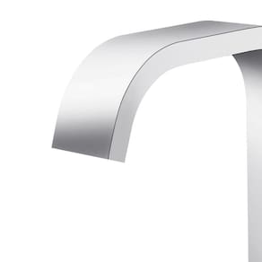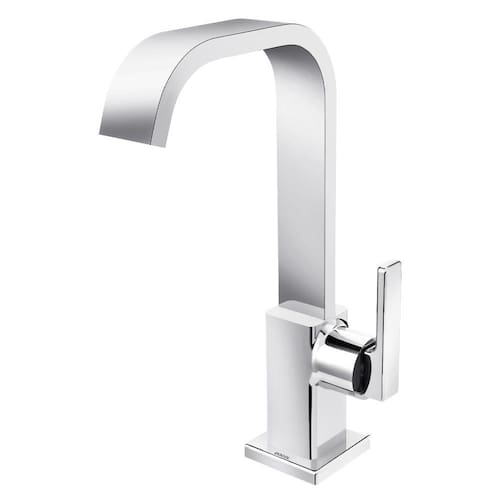 O desenho da bica leva a água exatamente para o centro da cuba e o volante em formato de alavanca torna a pega mais fácil.
