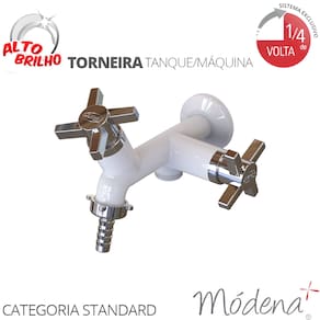 MODELO – Com duas saídas Linha: Módena Fixação: De Parede Bica: Reta Abertura: ¼ de Volta Uso: Lavanderia