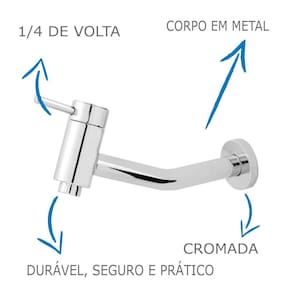 O seu banheiro merece o melhor nos mínimos detalhes, e é isso que você dará a ele com esta linda torneira. Além de deixar este cômodo mais bonito, garantirá sua higiene com muito mais praticidade e rapidez. Desenvolvido com um material de grande resistência e durabilidade que confere alto padrão à peça, recebe um belíssimo acabamento cromado que dá um toque de requinte e elegância ao produto. Tudo isso com acionamento de 1/4 de volta, tornando seu uso mais funcional e agradável.