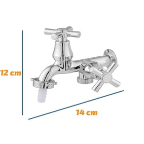 Acionamento com apenas 1/4 de volta, maior controle sobre o consumo da água; Bico para mangueira incluso, é só encaixar e utilizar; Saída para conectar a máquina de lavar, com apenas uma torneira você faz dois tipos de uso; Conexão de 1/2, padrão na maioria dos locais; Super leve e resistente, não enferruja e não mancha; Tamanho minimalista, não atrapalha o uso no tanque;