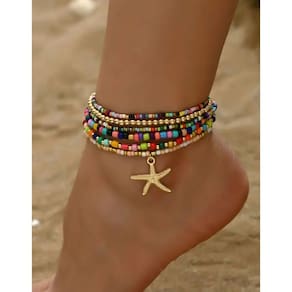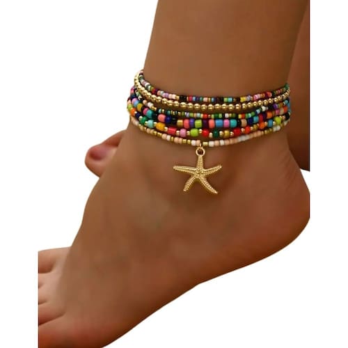 A tornozeleira Boho Chic com seis peças é um acessório que combina estilo, criatividade e um toque de liberdade. Ideal para usar em um dia ensolarado na praia ou para adicionar um charme extra ao seu visual diário, essa peça se destaca por seus vibrantes pingentes coloridos e design despojado. Com seus pingentes coloridos e detalhes como a estrela do mar, a tornozeleira Boho Chic se torna um item indispensável para as amantes do estilo. O Estilo Boho Chic O estilo Boho Chic é conhecido por sua estética descomplicada, que mescla elementos boêmios e hippies com um toque moderno. Esse estilo é caracterizado pelo uso de peças soltas, materiais naturais e uma paleta de cores terrosas e vibrantes. As tornozeleiras Boho Chic incorporam esses elementos, criando joias que são tanto elegantes quanto descontraídas. Pingentes Coloridos: Os pingentes em cores vibrantes são a marca registrada desse tipo de tornozeleira. Eles trazem vida e alegria ao acessório, tornando-o ideal para o verão. Estrela do Mar: O toque especial fica por conta da estrela do mar, que remete diretamente ao universo praiano, evocando sensações de tranquilidade e liberdade. Esses pingentes não apenas embelezam a peça, mas também trazem um ar de alegria e despreocupação. Como Usar a Tornozeleira Boho Chic A tornozeleira Boho Chic é versátil e pode ser combinada com várias roupas e estilos. Aqui estão algumas dicas de como usá-la: Looks de Praia: Combine com um vestido leve, sandálias rasteirinhas e um chapéu de palha para um visual perfeito para o litoral. Estilo Casual: Use com shorts jeans, uma camiseta básica e alpargatas para um look casual e confortável. Eventos ao Ar Livre: Combine com um vestido longo e fluido, sandálias de tiras e uma bolsa de couro para eventos como festivais de música ou feiras ao ar livre. A tornozeleira Boho Chic com pingentes coloridos e uma estrela do mar é mais do que uma simples peça de joalheria; é uma expressão de estilo e personalidade. Seja para um dia relaxante na praia ou para adicionar um toque especial ao seu visual diário, esta joia é uma escolha encantadora e versátil.