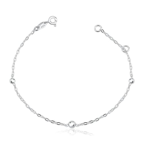 Tornozeleira Bolas 3mm 4mm Prata925 25cm -