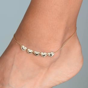 Tornozeleira Dourada 5 Corações Aurearosa - Semi Joias Na AureaRosa, você encontra peças únicas e cheias de elegância, perfeitas para complementar seu estilo com brilho e sofisticação. Nossas semi joias são cuidadosamente selecionadas, combinando design moderno e alta qualidade para valorizar cada look. Banho de Ouro 10 Milésimos - Peças banhadas a ouro com um toque delicado e brilhante. Para maior durabilidade, recomendamos evitar contato com água, perfumes e produtos químicos. de 2 Anos - Toda peça possui direto com a fábrica, assegurando qualidade e satisfação. Presenteie-se ou surpreenda quem você ama com joias que trazem beleza e confiança. Aurearosa - Brilho que Conquista Marca: Aurearosa Ean: 7898022214436