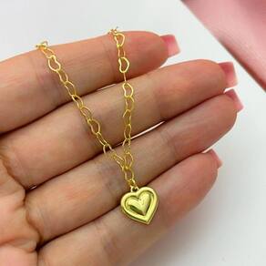 Tornozeleira Elos Coraçõess E Coração Pendurado Banhados A Ouro 18k Tornozeleira Elos Coraçõess e Coração pendurado Banhados a Ouro 18k 24cm - Tornozeleira Elos Coraçõess e Coração pendurado Banhado a Ouro 18k Tornozeleira banhada a ouro 18k com design delicado e sofisticado. Possui delicados elos e fecho ajustável com extensor, proporcionando um encaixe perfeito. O toque especial fica por conta do pingente coração pendurado, que traz charme e elegância. Ideal para usar no dia a dia ou compor looks mais elaborados. Aposte nesta peça única para destacar o seu estilo com sutileza e sofisticação!